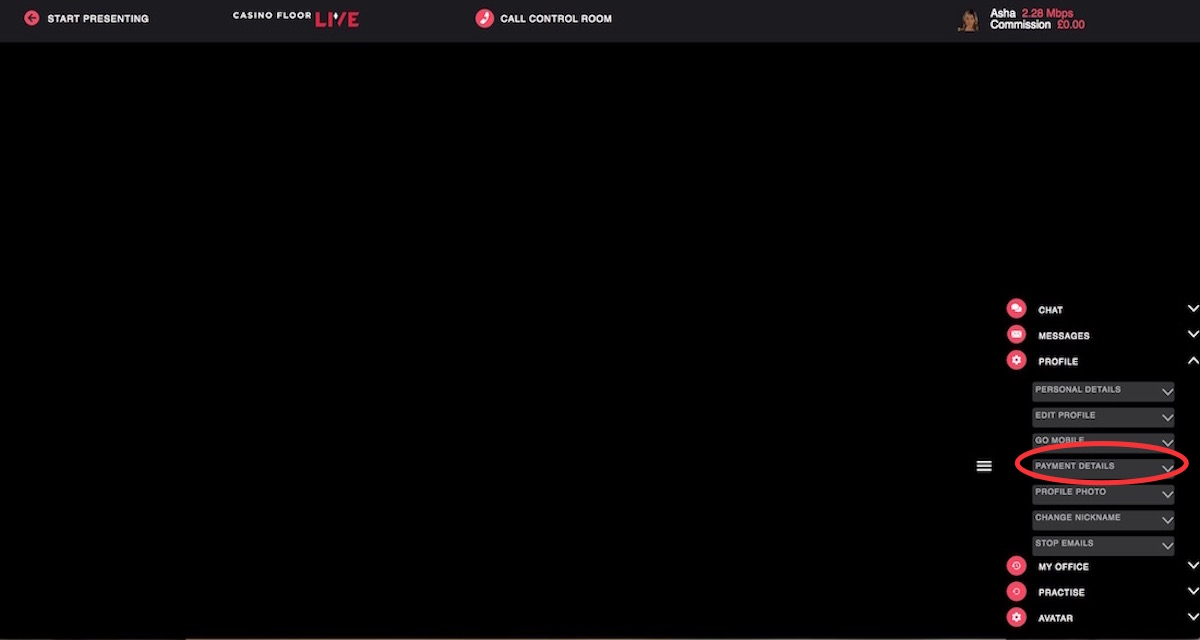 You can enter your Paypal details by clicking on 'Enter Casino Floor' and then 'Profile'